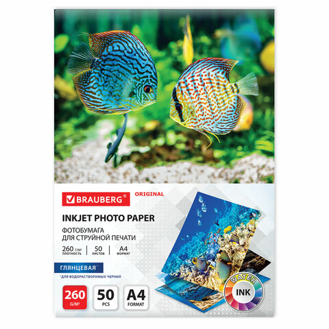 Фотобумага глянцевая для струйной печати А4 "Brauberg", 260 г/м2, 50 л