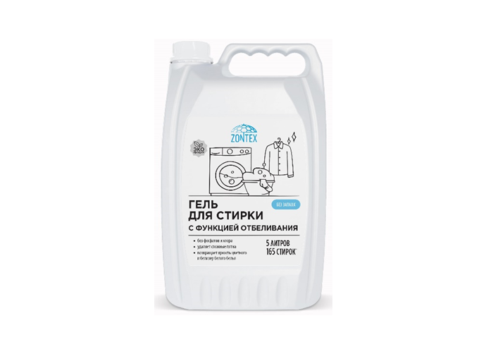 Гель для стирки 5л Zontex "Без запаха", с функцией отбеливания