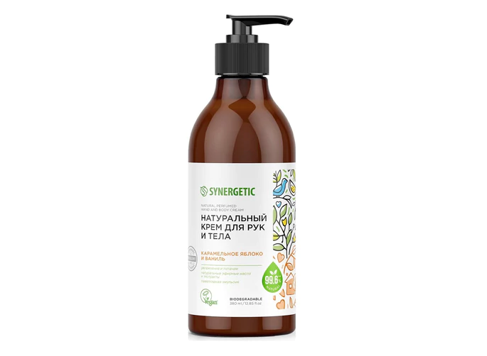 Крем для рук и тела 380мл SYNERGETIC "Карамельное яблоко и ваниль" увлажнение, дозатор