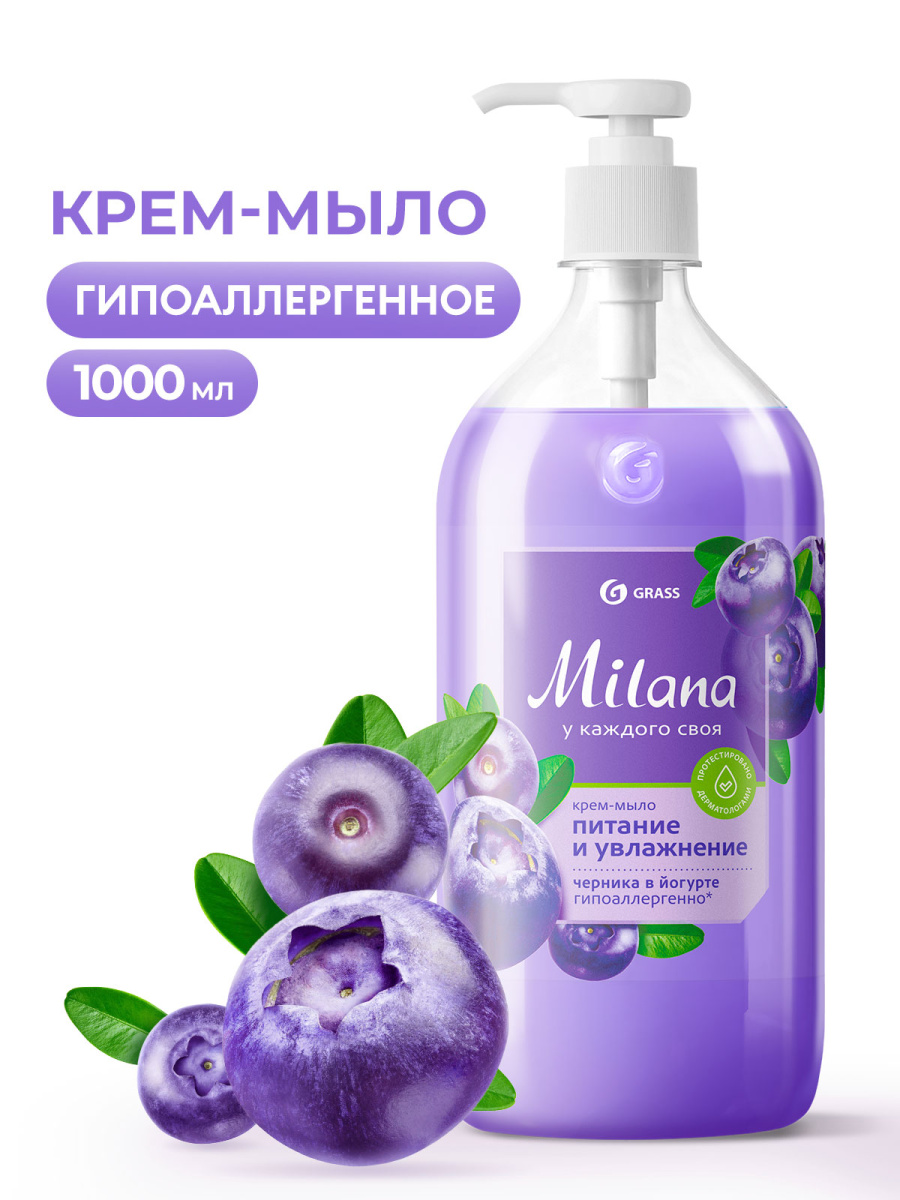Мыло-крем 1л увлажняющее Milana черника в йогурте (Милана) Грасс /6/ 126301