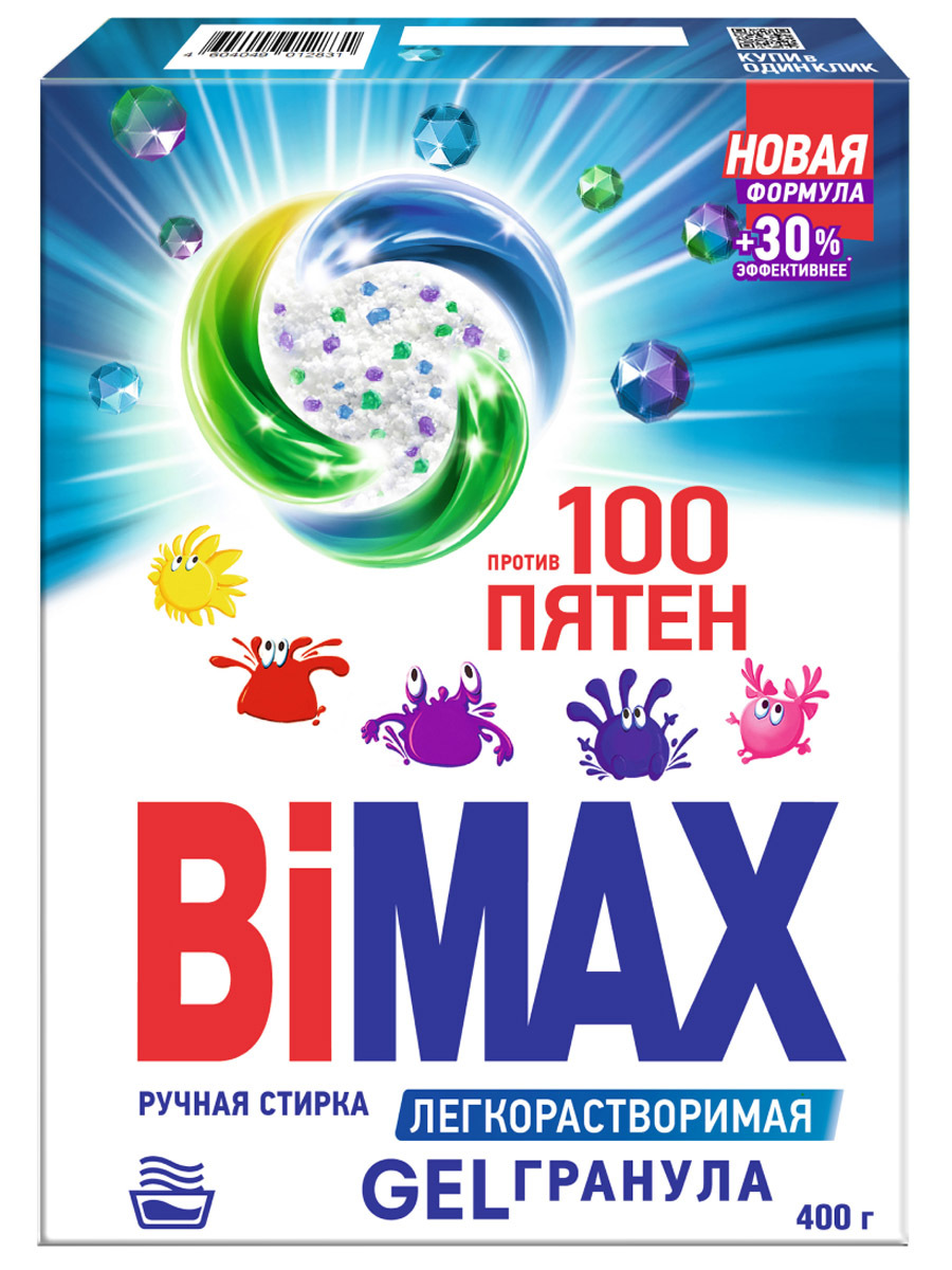Порошок стиральный 400гр ручная стирка БиМакс 100 пятен /24/ 2509-1