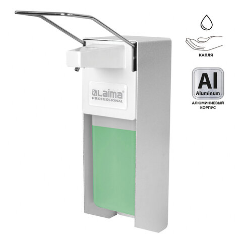 Дозатор локтевой LAIMA для жидкого мыла и геля-антисептика, с еврофлаконом 1 л, металл, 605706