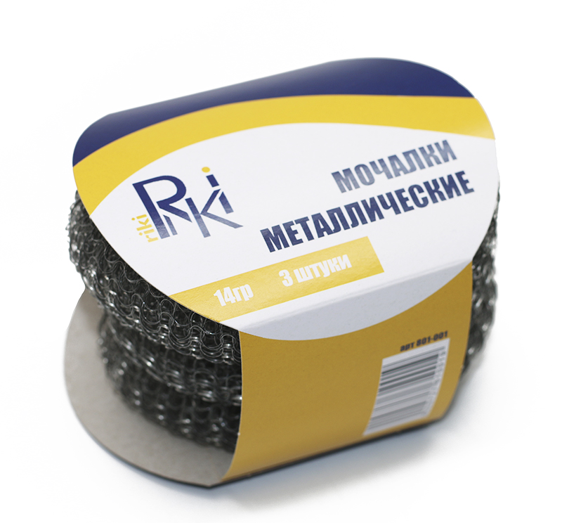 Мочалка для посуды RiKi, металлическая, 14г, 3шт/упак (обечайка) /75/ 801-001