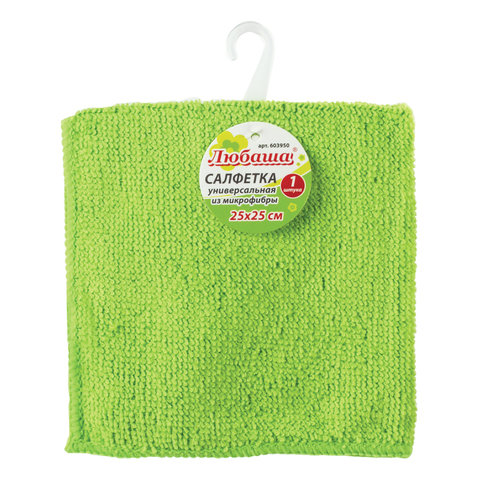 Салфетка микрофибра 25*25см, зеленая, 180г/м2, без инд. упак, ЛЮБАША, 603950