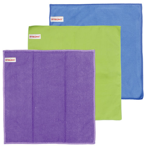 Салфетка микрофибра 30*30см, 3шт/упак (универсальная, стекло, мебель), 200г/м2, инд. упак, 601258