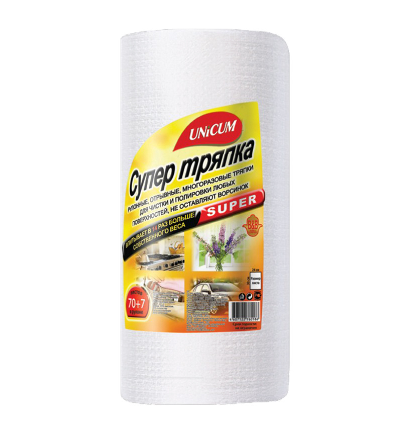 Салфетка из вискозы "Супер Тряпка" "Unicum", 24×30 см, 70 шт/рулон