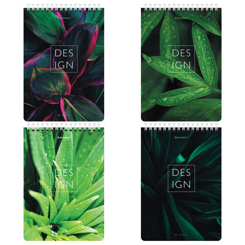 Блокнот А5 80л, клетка, BRAUBERG "Растения", гребень, 114388
