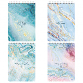 ОписаниеБлокнот формата А5 на евроспирали содержит 60 листов с линовкой в клетку, что позволяет зафиксировать большой объем нужной информации и дает возможность аккуратно заполнить цифровые значения, а также нанести чертежные зарисовки. Гребень расположен сверху. Обложка выполнена из мелованного картона плотностью 190 г/м2. Внутренний блок состоит из белой офсетной бумаги плотностью 60 г/м2.