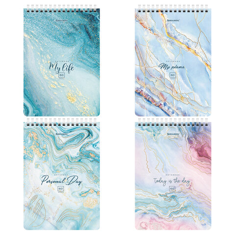 Блокнот А5 60л, клетка, BRAUBERG, гребень, мрамор, перфорация на отрыв, 114360
