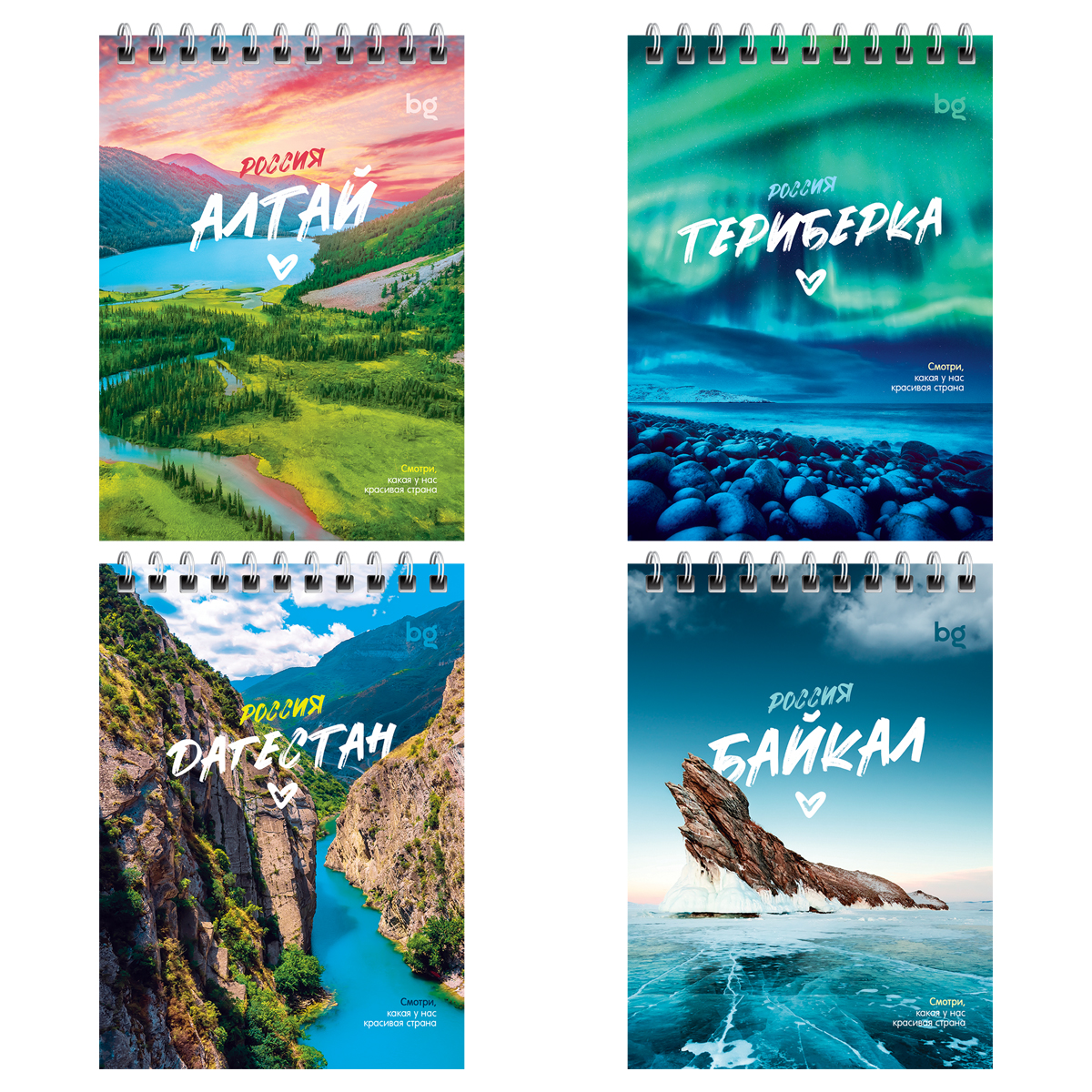 Блокнот А6 40л, клетка, BG "Наши путешествия", гребень, ассорти 4 вида /36/ 366704