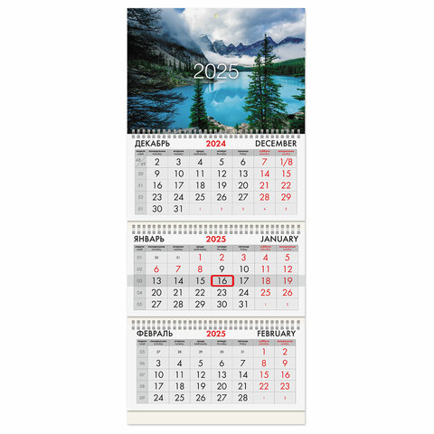 Календарь квартальный 2025г 3 бл. на 3 гр. BRAUBERG "Горное озеро", 116143