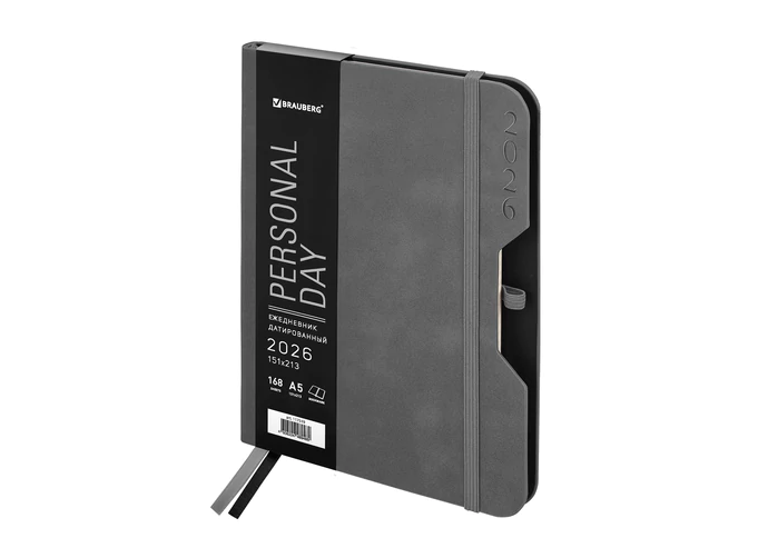 Ежедневник 2026г BRAUBERG "Note", А5, 168л, под кожу, серый, 117519