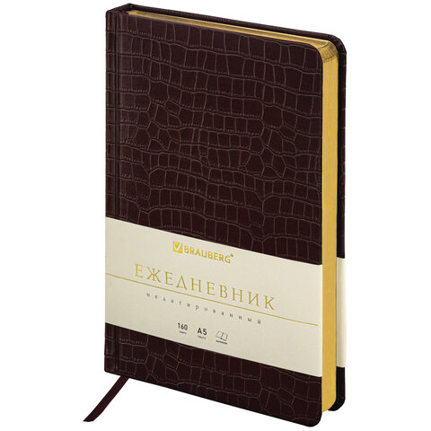 Ежедневник недатированный BRAUBERG "Comodo", А5, 160л, под кожу, темно-коричневый, 123838