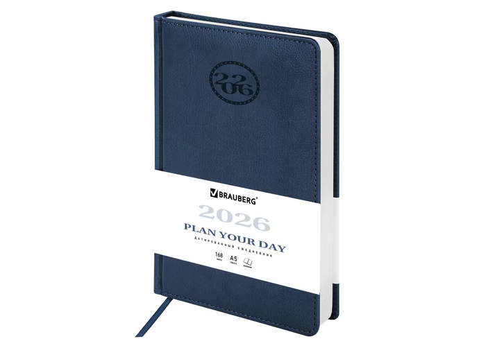 Ежедневник 2026г BRAUBERG "Favorite", А5, 168л, под кожу, синий, 117036
