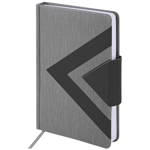 Внутренний блок включает 160 листов белой бумаги плотностью 70 г/м2. Каждая страничка имеет перфорированный угол. Благодаря стандартному формату А5 (138x213 мм) ежедневник удобно использовать как в офисе, так и на выездных деловых встречах. Твердая обложка, стилизованная под гладкую кожу, подходит для горячего тиснения. Снабжен магнитной застежкой, благодаря чему ежедневник не откроется в сумке или портфеле. Форзац ежедневника представлен картами мира и России. Дополнением является закладка-ляссе, с помощью которой при необходимости можно быстро открыть ежедневник на нужной странице. Помимо прочего ежедневник снабжен справочным материалом. Выполнен в комбинации из двух цветов - черный и серый. - Отзывы