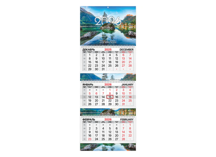 Календарь квартальный 2026г 3 бл. на 3 гр. BRAUBERG "Горное озеро" /5/ 116822