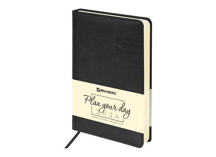 Ежедневник 2026г BRAUBERG "Imperial", А5, 168л, под кожу, черный, 117063