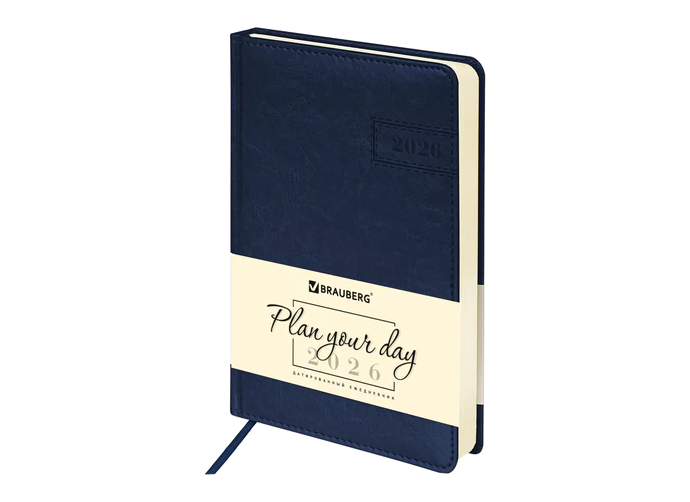 Ежедневник 2026г BRAUBERG "Imperial", А5, 168л, под кожу, синий, 117062