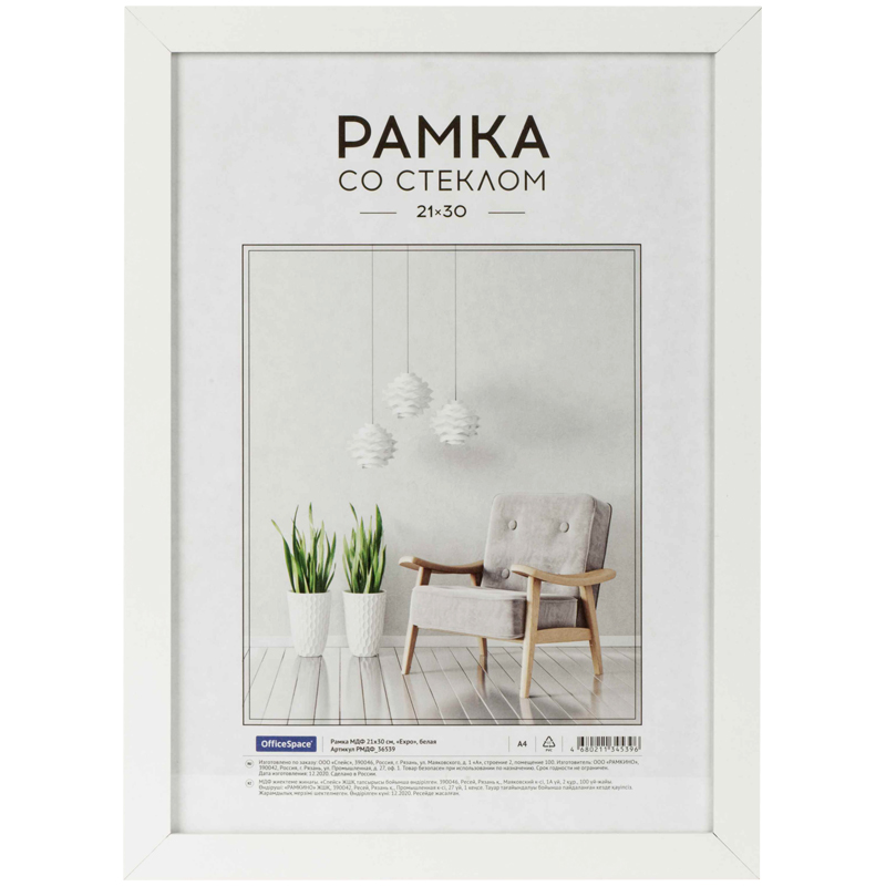 Рамка МДФ 21*30см, OfficeSpace "Expo", белая /4/ 312098