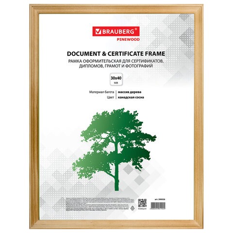 Рамка деревянная 30*40см, BRAUBERG "HIT", канадская сосна, стекло /4/ 390026