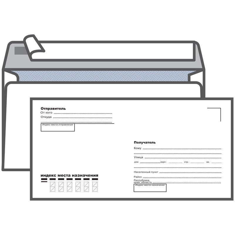 Конверт Е65 110*220мм КУДА-КОМУ, 25шт/упак, без окна, отрывная лента, внутренняя запечатка, Курт, 144127