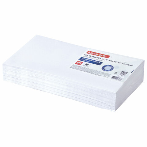 Конверт Е65 110*220мм, 100шт/упак, без окна, отрывная лента, BRAUBERG, 112193