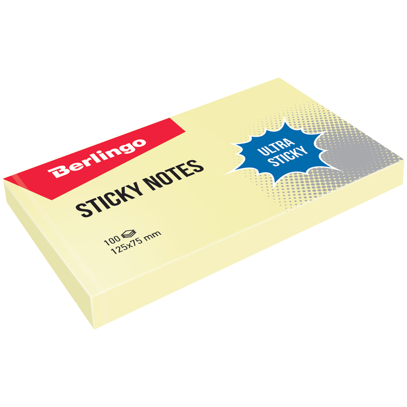 Бумага для заметок Berlingo "Ultra Sticky" 125*75мм, 100л, пастель желтый, 270280