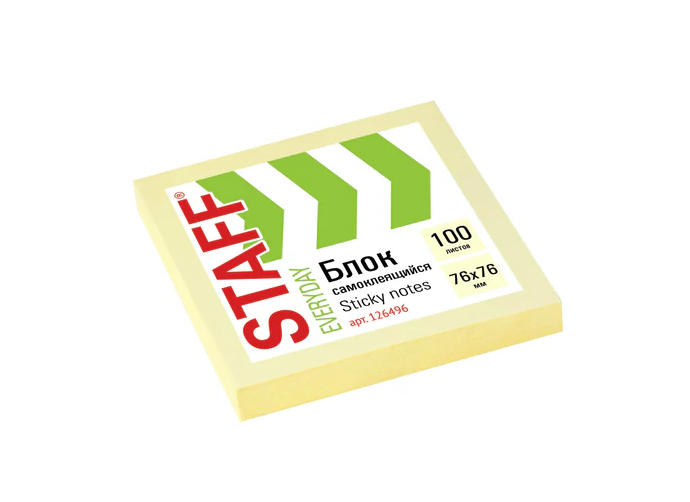Бумага д/заметок STAFF 76*76мм, 100л, желтый /24/ 126496