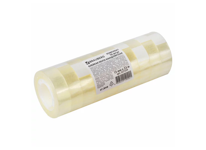 Клейкая лента BRAUBERG 15мм*33м, 10шт/упаковка, прозрачная, 227259