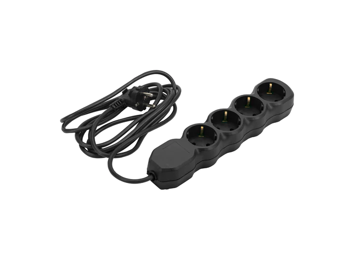 Удлинитель У10-004, 4 розетки, c заземлением, 3 м, черный /3/ 514140