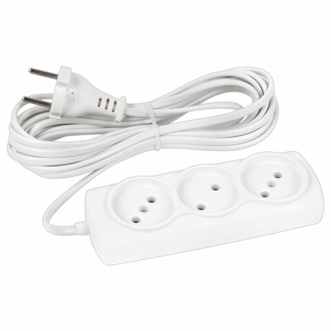 Удлинитель Р16-010, 3 розетки, без заземления, 6А, 5м, белый, 512614
