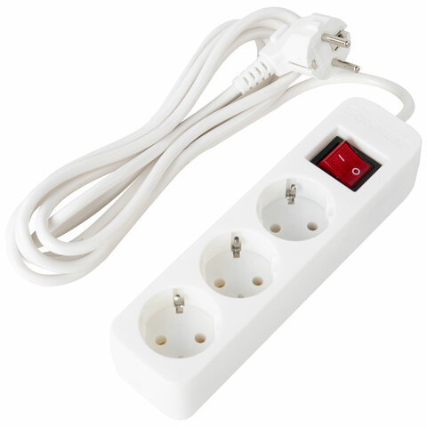 Удлинитель SONNEN PSW-303, 3 розетки, c заземлением, выкл., 10 А, 3 м, белый /3/ 513660