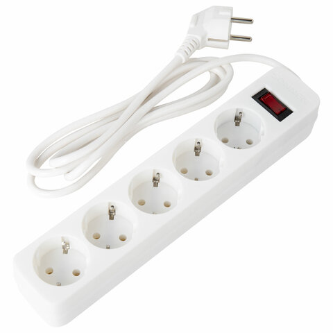 Сетевой фильтр SONNEN SPW-185, 5 розеток с заземлением, выключатель, 10 А, 1,8 м, белый /3/ 513653