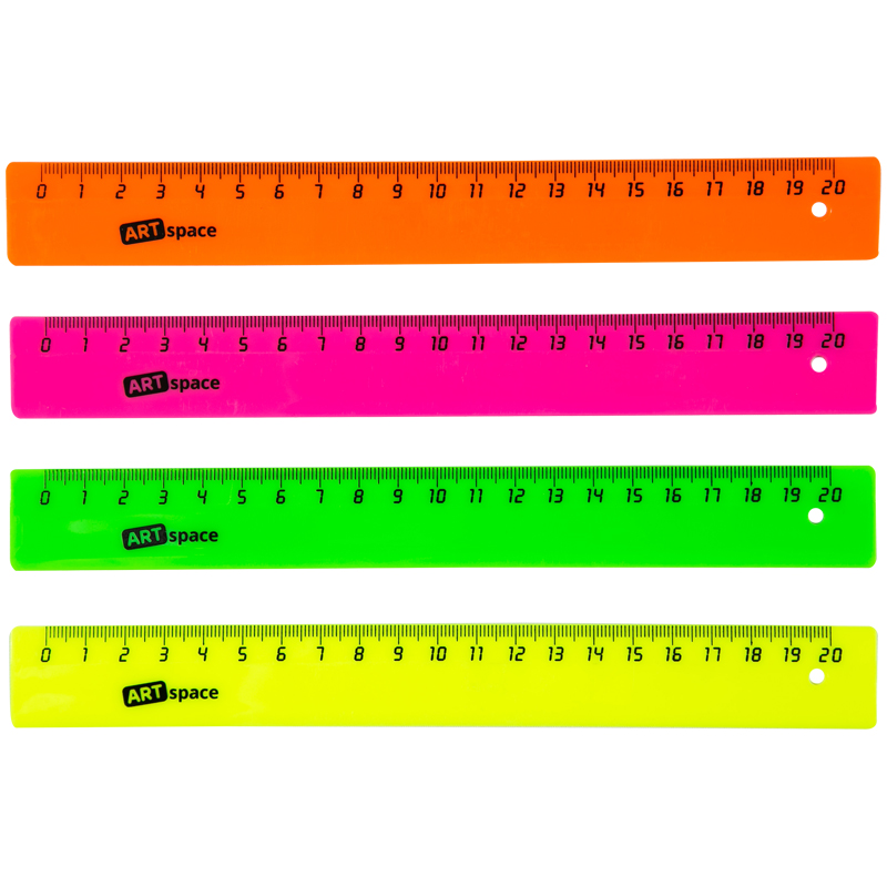 Линейка 20см ArtSpace, пластик, флуоресцентная, ассорти, 256248