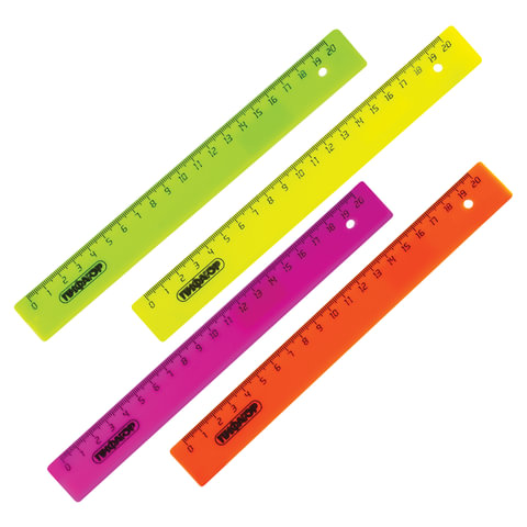 Линейка 20см Пифагор, пластик, непрозрачный неон, ассорти, 210604