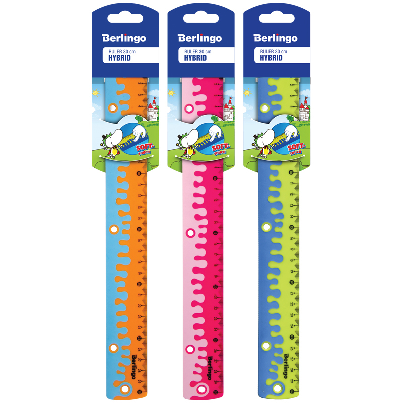 Линейка 30см Berlingo "Hybrid", пластиковая, нескользящая, ассорти, 248751