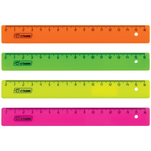 Линейка 16см СТАММ NEON, 4 цвета, ассорти, 027790