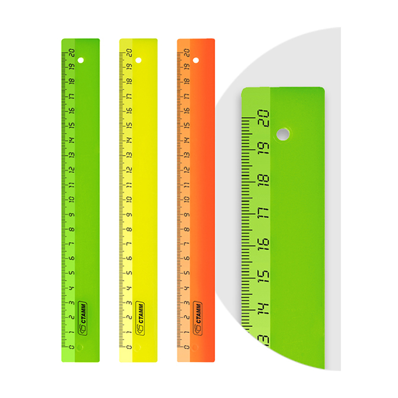Линейка 20см СТАММ NEON, 4 цвета, ассорти, 023934