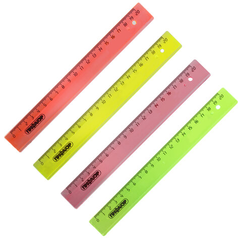 Линейка 20см Пифагор, пластик, прозрачный неон, ассорти, 210605