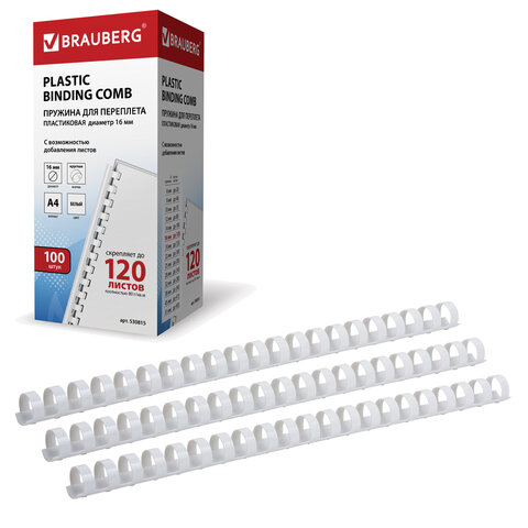 Пружины d16 BRAUBERG, белые, 100шт/упак, 530815