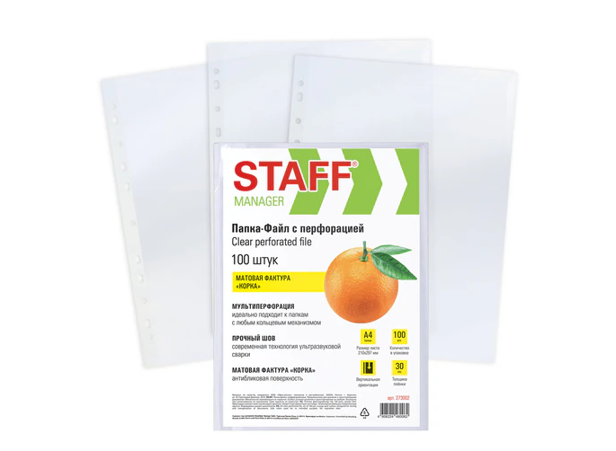 Мультифора А4, 30мкм, STAFF ЭКОНОМ, 100шт/упак, матовая, 273002