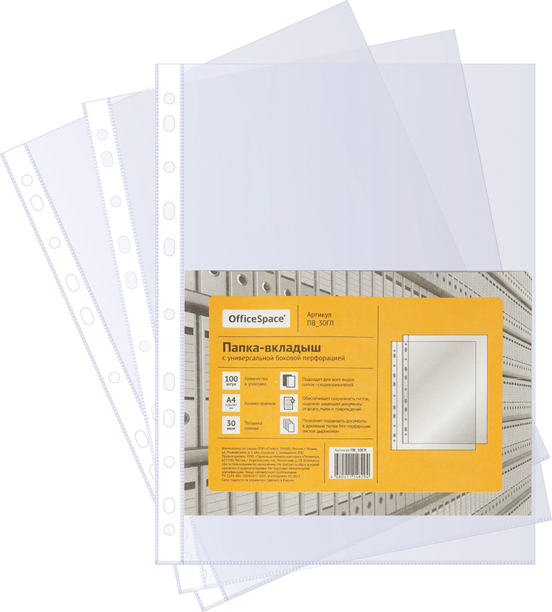 Мультифора А4, 30мкм, OfficeSpace, 100шт/упак, глянец, 253788