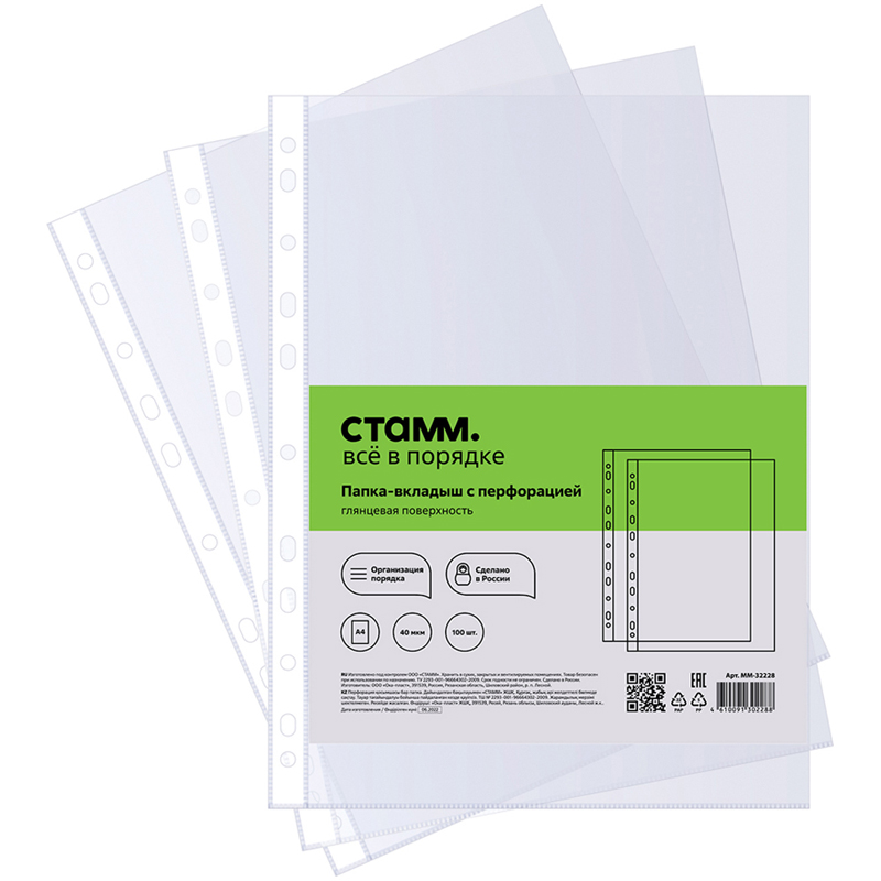 Мультифора А4, 40мкм, СТАММ, 100шт/упак, глянец, 343165