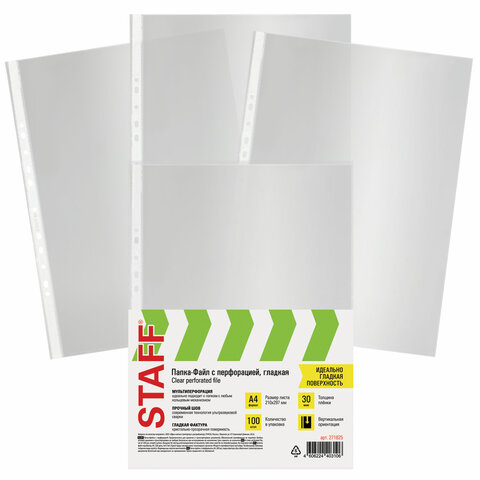 Мультифора А4, 30мкм, STAFF, 100шт/упак, глянец, 271825