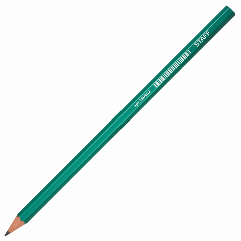 Карандаш чернографитный без ластика, HB, пластик, шестигранный, STAFF, корпус зеленый, 180962