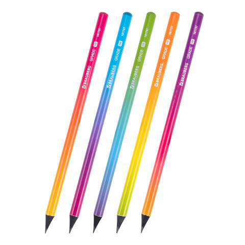 Карандаш ч/г без ластика, HB, черн. дер., круглый, BRAUBERG "GRADE", ассорти /72/ 181757