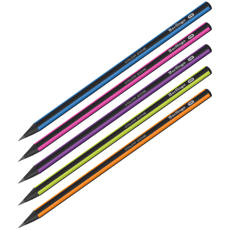 Карандаш чернографитный без ластика, HB, черное дерево, трехгранный, Berlingo "Color Zone", ассорти,311456