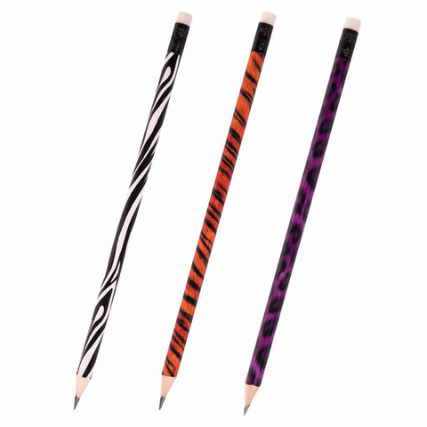 Карандаш ч/г с ластиком, HB, дерево, круглый, ЮНЛАНДИЯ "АФРИКА", ассорти, 181769