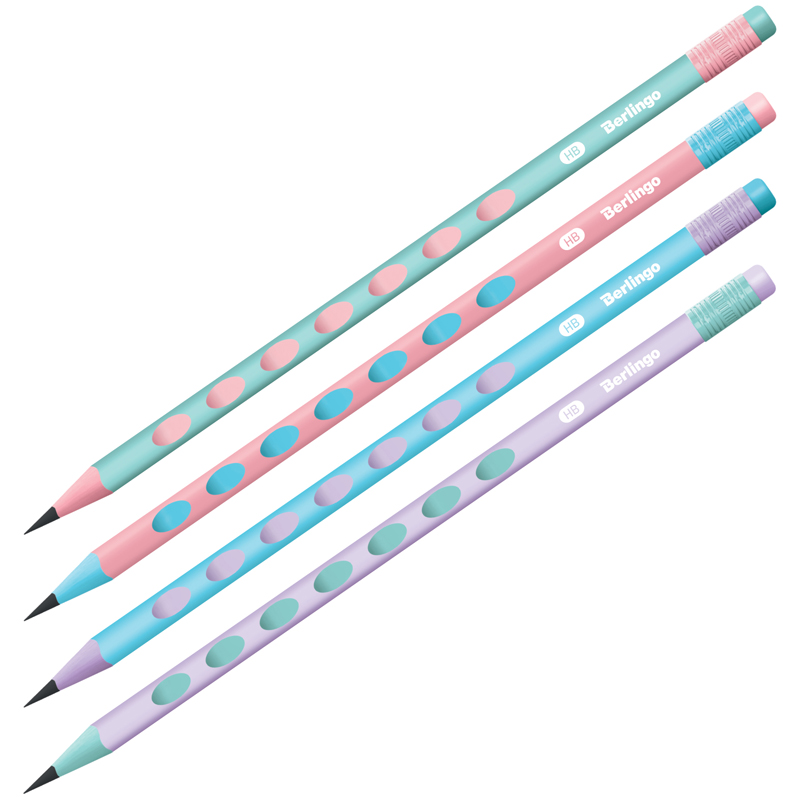 Карандаш чернографитный с ластиком, HB, дерево, трехгранный, Berlingo "Haze", корпус ассорти, 338531