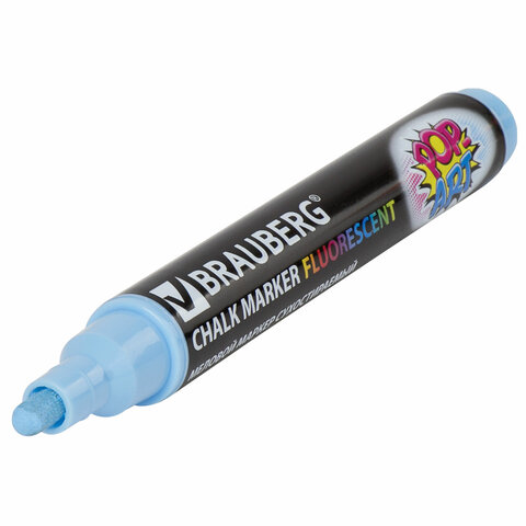 Маркер меловой 5мм, голубой, BRAUBERG "POP-ART", водная основа стираемый, 151533